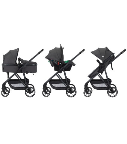 Brumo Trio está diseñado para la practicidad diaria. Su plegado compacto, con el asiento enganchado, facilita su almacenamiento y transporte. El cambio entre asiento de cochecito y silla de coche es rápido e intuitivo, así que es fácil salir, tanto para subirse al coche como para dar un paseo.