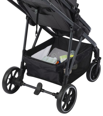 La amplia cesta de la compra soporta hasta 3 kg, y gracias al cubrepiés y la burbuja impermeable puedes salir haga el tiempo que haga.