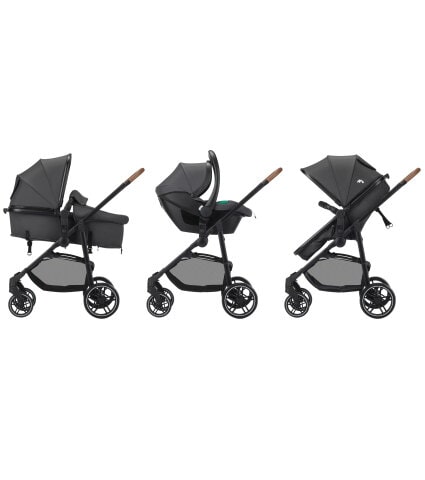 Desde los mimos de los recién nacidos adormilados hasta las curiosas aventuras de los niños pequeños, el asiento del Haze Trio Lux se transforma fácilmente de un cómodo moisés a un asiento de cochecito anatómico.